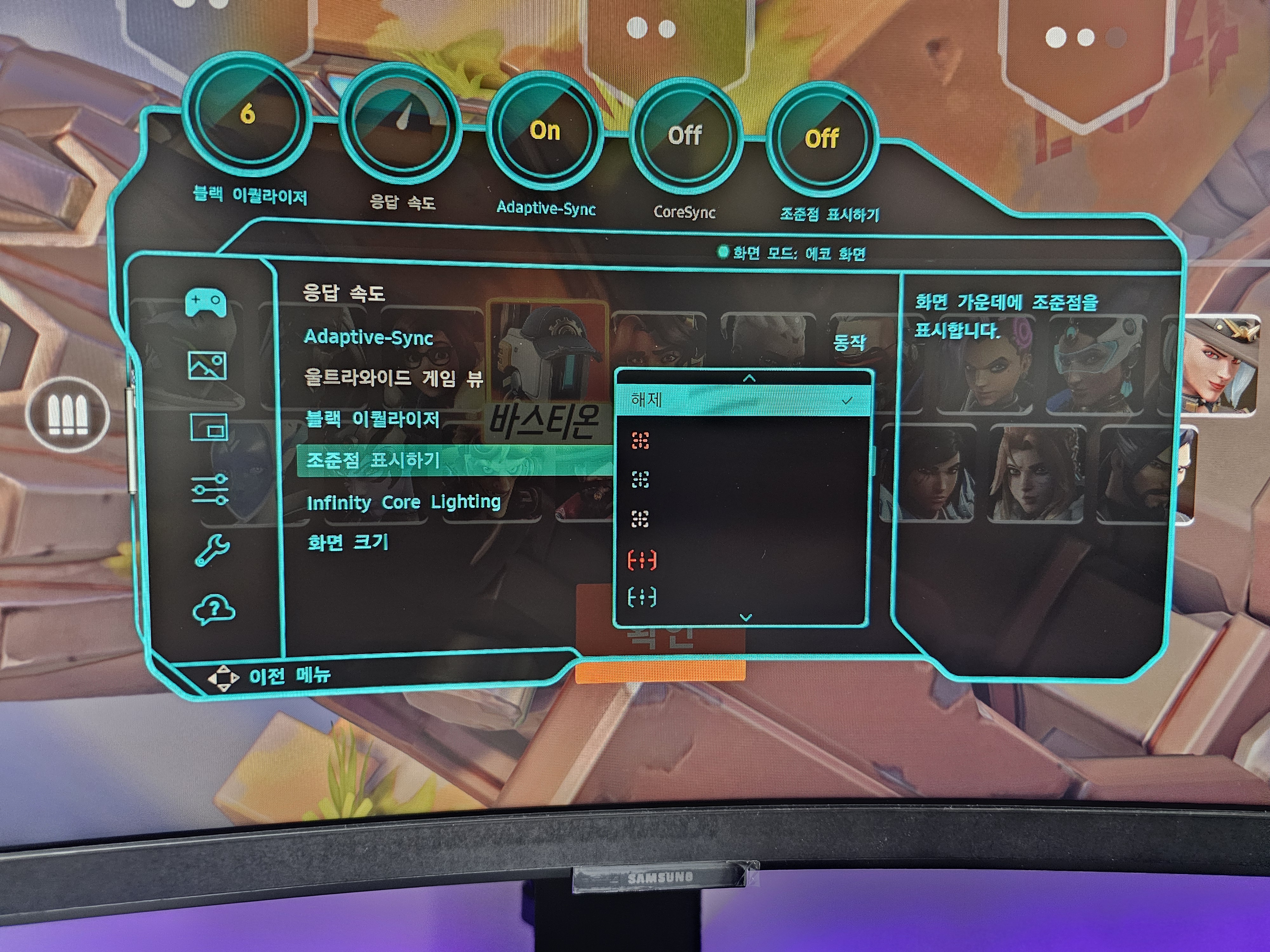 특히 FPS 게임을 많이 플레이해 보신 분들이라면, 화면 중앙에 있는 '조준점'이 얼마나 중요한지 공감하실 텐데요. 오디세이 G75F에는 조준점을 모니터에서 표시해 주는 기능인 '조준점 표시하기'가 있어, 게임 내 조준점이 너무 작거나 게임에 따라 제한적으로만 표시되는 경우 유용하게 사용할 수 있습니다.
