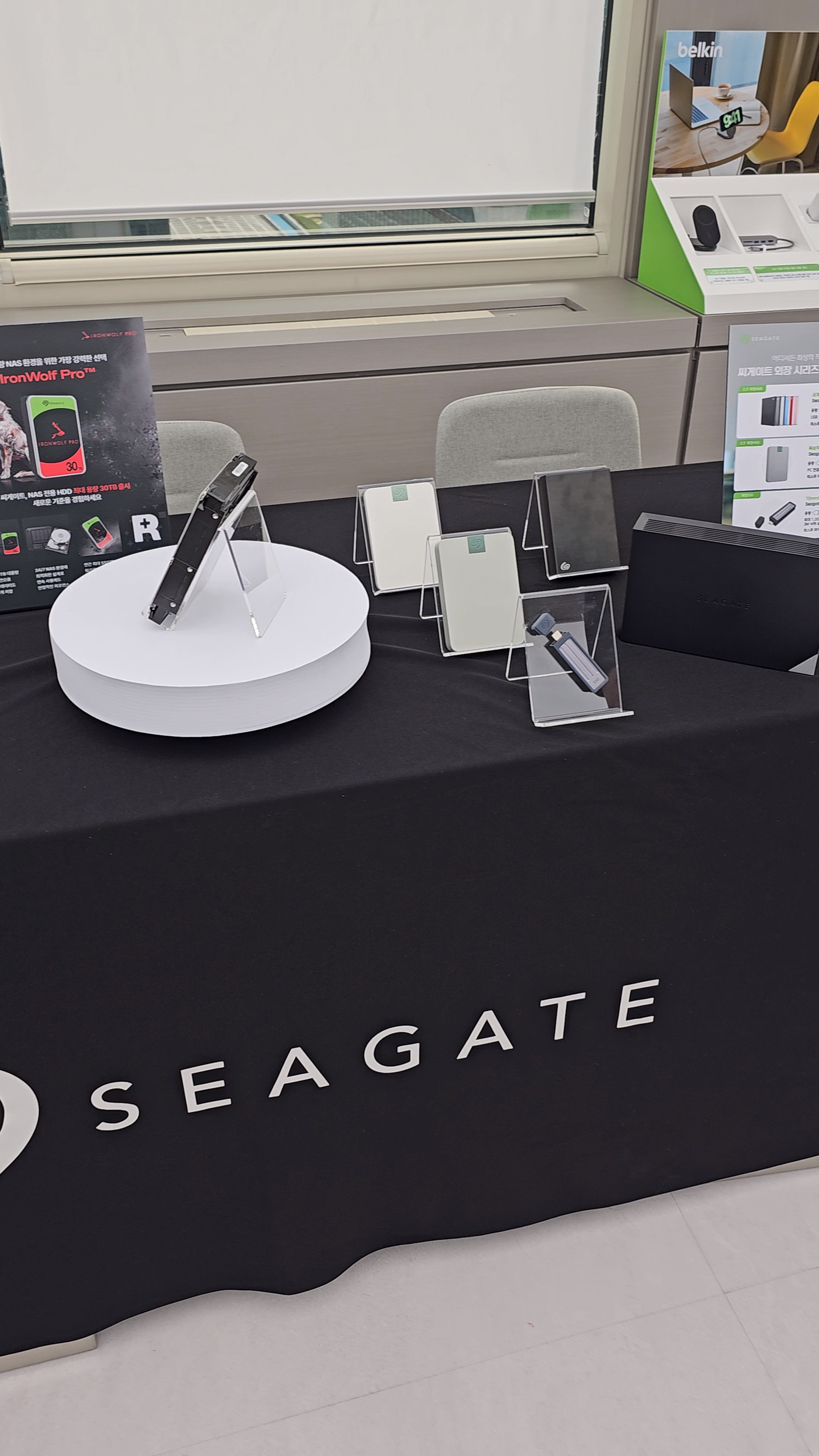 LaCie 제품군 바로 옆쪽에는 LaCie의 모회사인 Seagate의 다양한 라인업도 함께 전시되어 있었습니다. 물론 이번 서포터즈 활동에서 다룰 브랜드는 아니지만, 저 역시 평소 Seagate 하드 드라이브를 사용해본 경험이 있기에 관심 있게 둘러보았습니다.