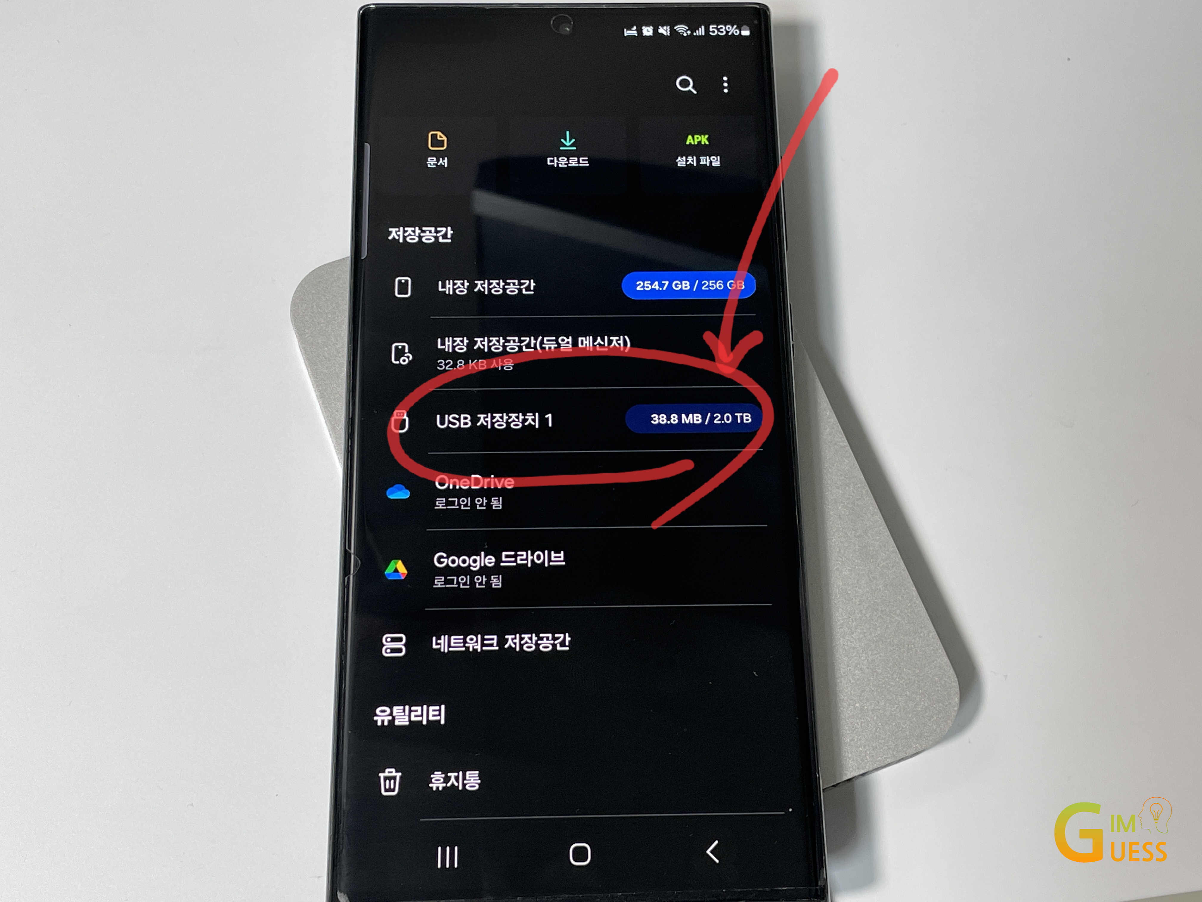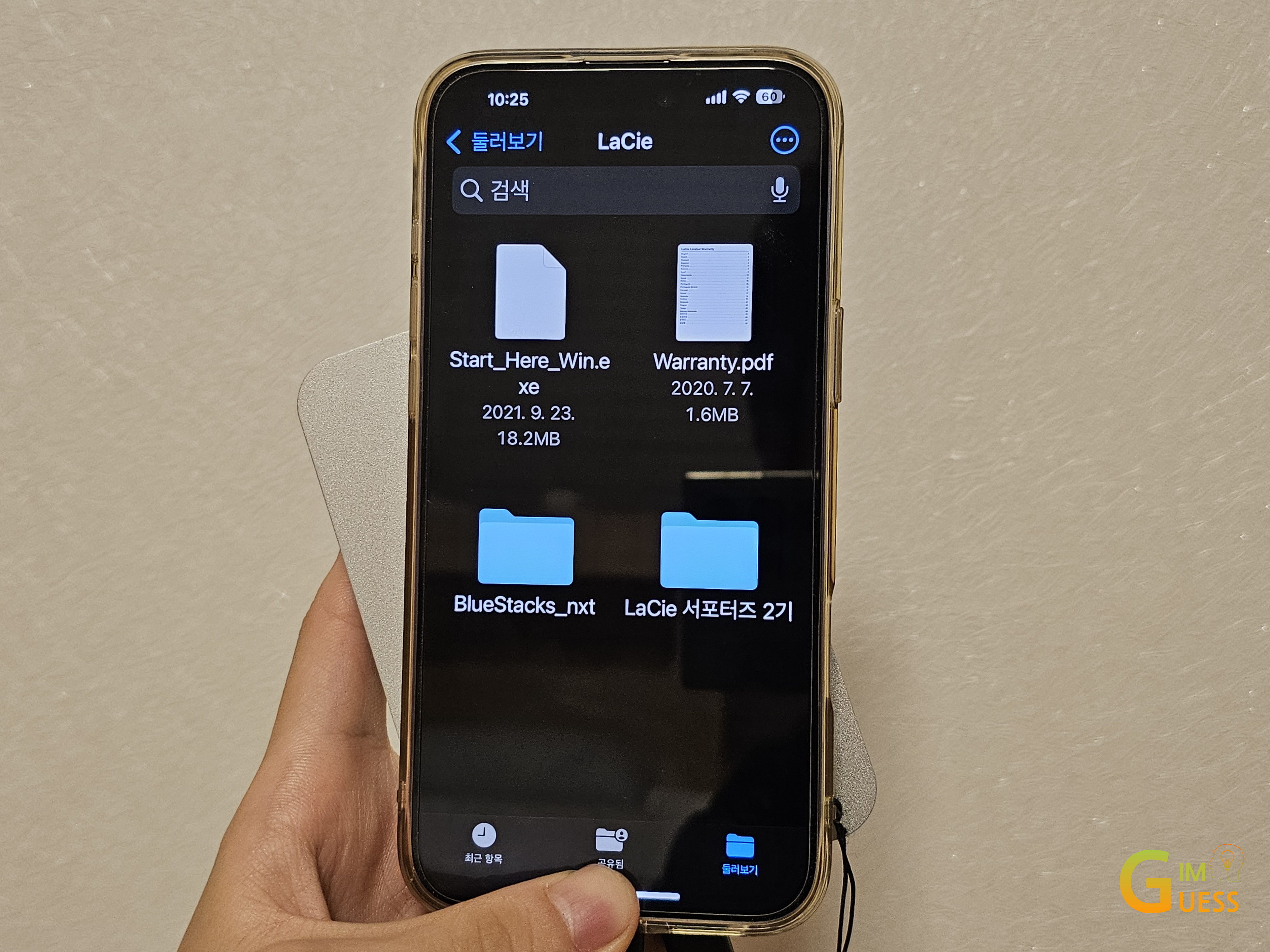 USB-C 케이블로 안드로이드 스마트폰에도 연결하여 파일 접근이 가능한지 테스트해 보았습니다. LaCie Mobile Drive를 연결하자마자 별도의 설정 필요없이, 파일 관리자에서 즉시 인식되는 것을 확인할 수 있었습니다.