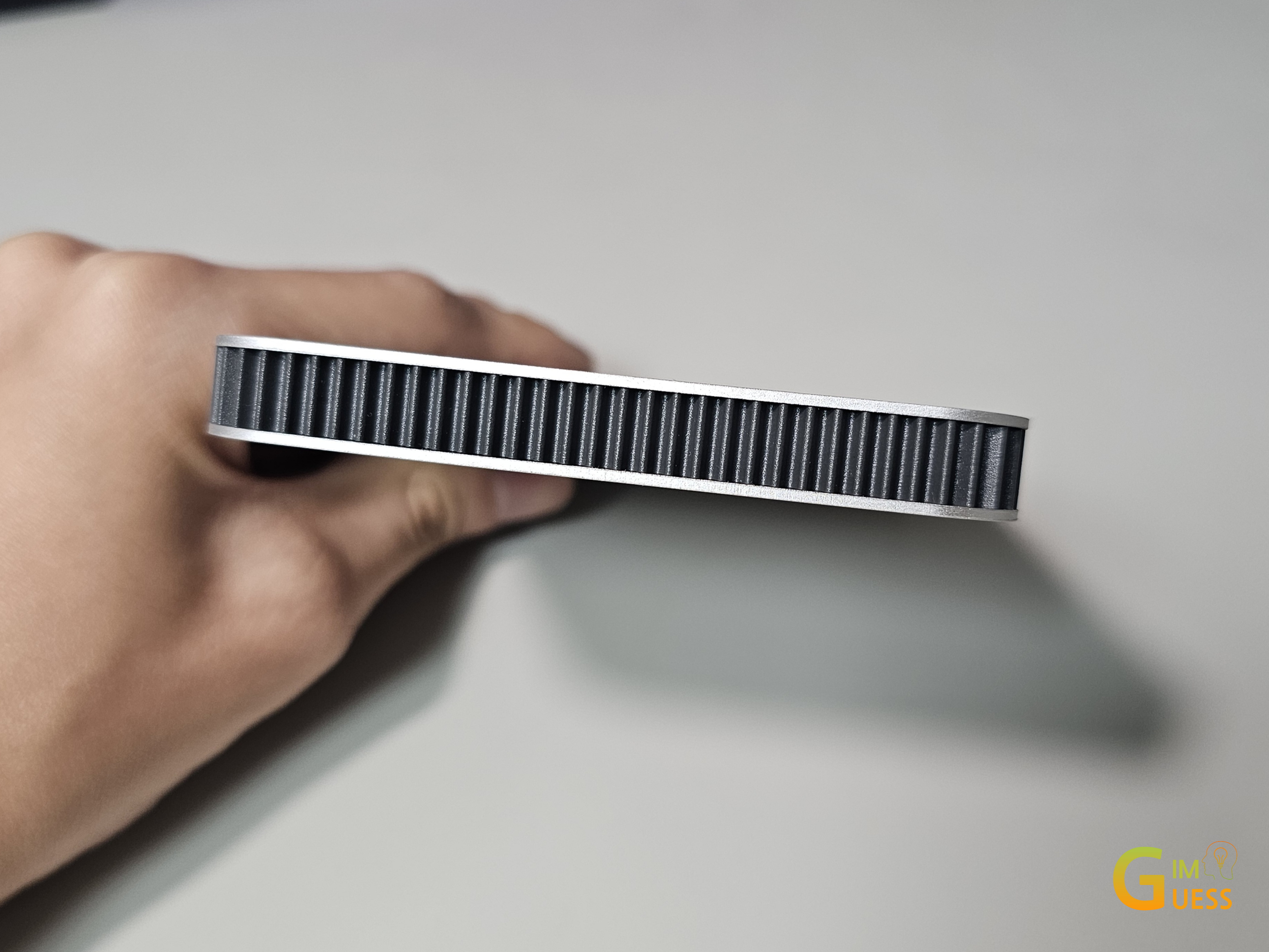 본체는 메탈 알루미늄 소재로 제작되어 매우 고급스러운 질감을 느낄 수 있었고, 상당히 매끈한 실버 컬러가 돋보였습니다. 측면의 패턴은 디자인적인 디테일 뿐만 아니라 손으로 쥐었을때, 미끄러짐을 방지할 수 있는 기능을 제공하고 있다는 것을 느낄 수 있었습니다.